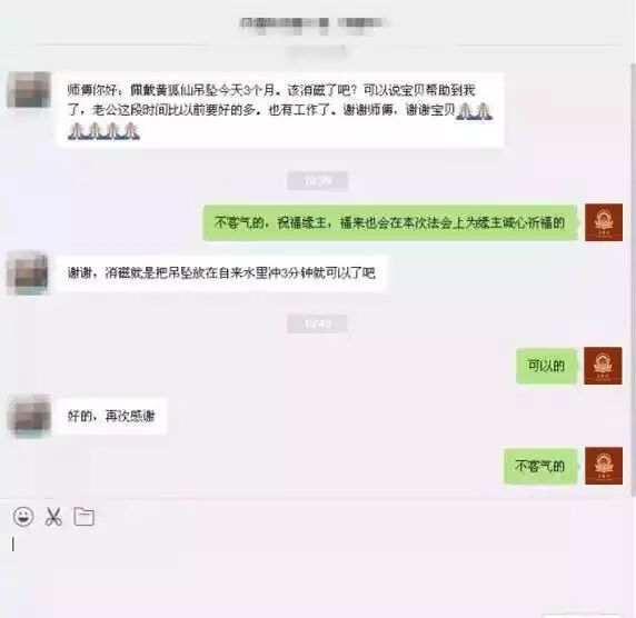 几年前对民间流传善缘居士开光的狐仙圣品有所耳闻,听说很多富豪大亨,明星艺人都收藏佩戴有他设计的狐仙吊坠,今年经人引荐有幸拜会了善缘居士,从他那里得到了很多不为人知的故事,而且确实我也是善缘阁开光狐仙灵宝的受益者。经过善缘居士指点最近半年工作上贵人运旺了不少,加薪晋级样样不少,而且也结识了如意郎君年底即将步入婚姻殿堂!心里非常感激居士的恩德!为积德行善,我愿意免费推广善缘居士个人微信号!