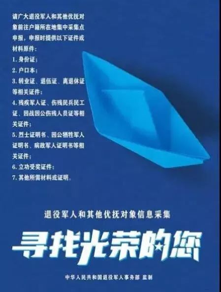 为认真贯彻落实中省市关于进一步做好退役军人服务保障工作的决策部署,根据陕西省退役军人服务管理工作领导小组办公室《关于转发退役军人事务部〈关于退役军人和其他优抚对象信息采集工作方案〉的通知》(陕退办〔2018〕2号)精神,经黄陵县退役军人服务管理工作领导小组研究决定,全面开展黄陵县退役军人和其他优抚对象信息采集工作,有关事项公告如下: