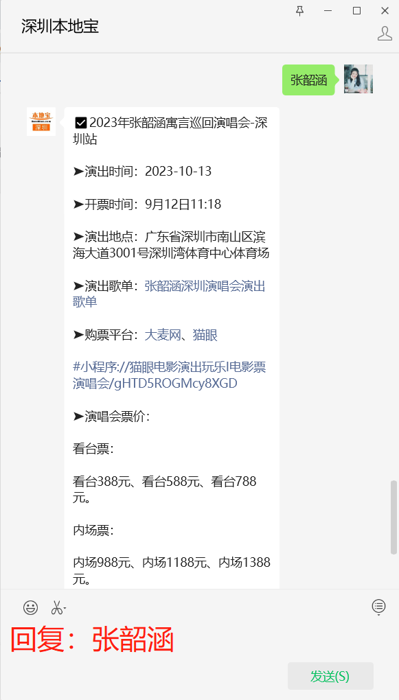小编有话说:点击下方名片,跳转【深圳本地宝】公众号,回复【张韶涵】关键词,获取抢票入口