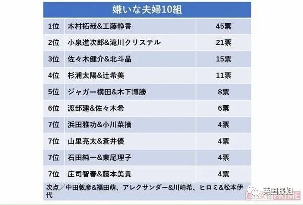 在今年《周刊女性》的民调中,木村夫妇更是荣登最令人讨厌的夫妻榜首。虽然这种评选的参与人数都不算很多,但还是能反映出一些问题的。