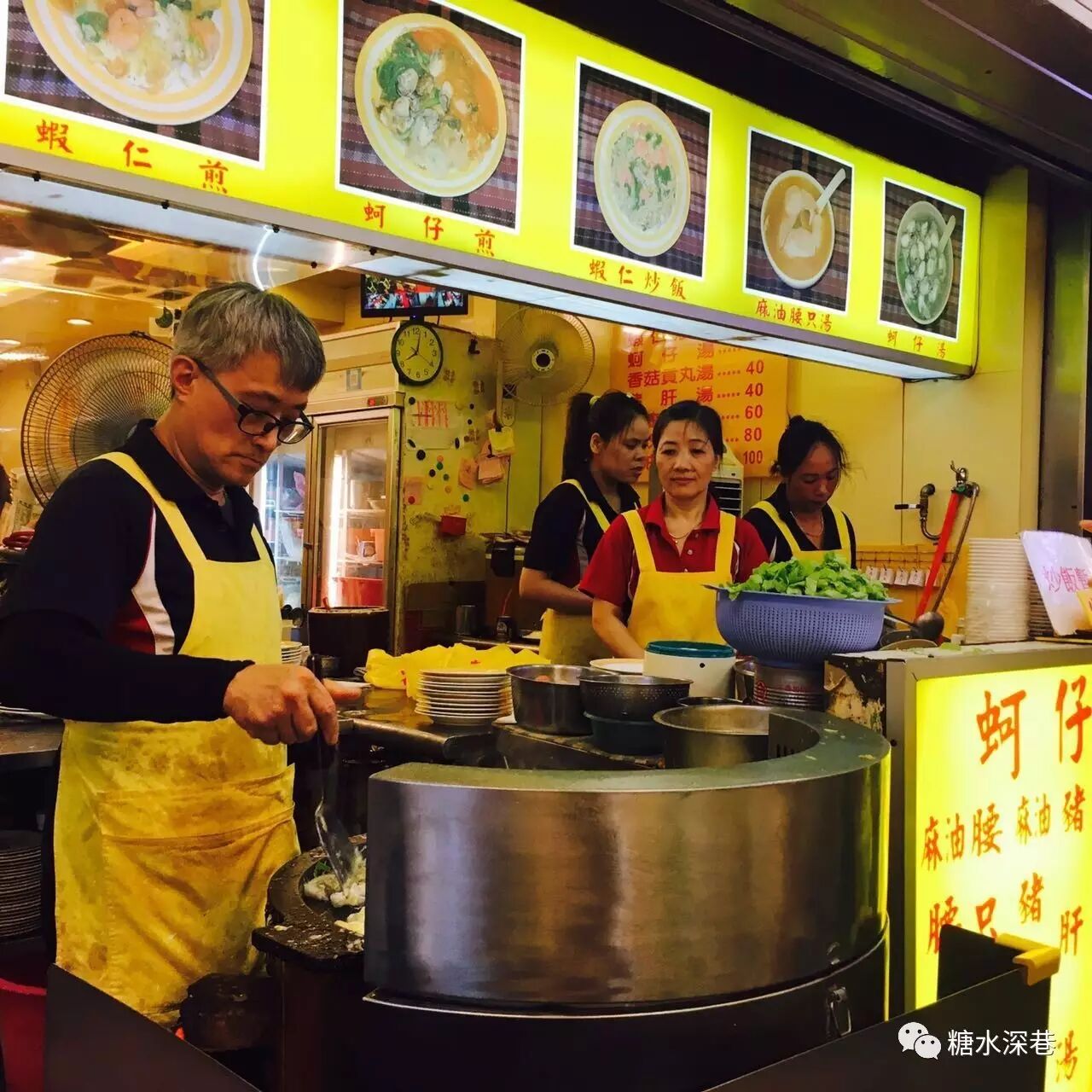 摊档沿着马路排下去,左右各一排,两排档口是面对面的,中间留着一条极窄的路供食客穿行,空间特别小,人们摩肩接踵,要和友人手牵手,才不至于失散。