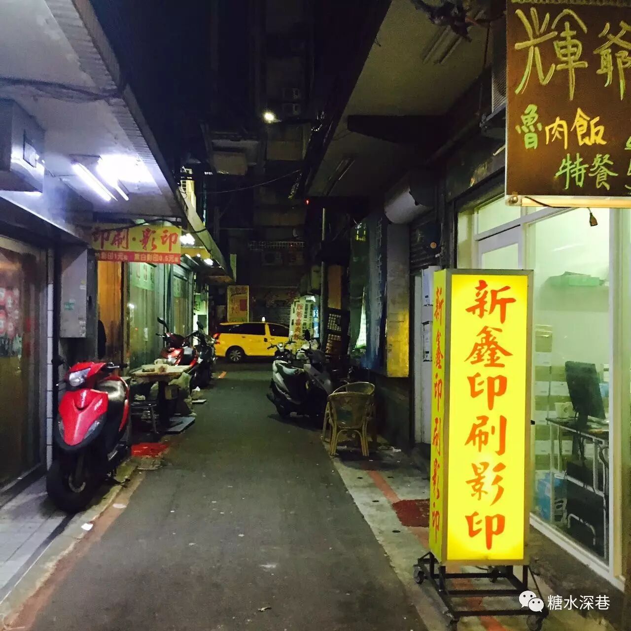 经过一道道巷口,里面安安静静地,店照开,灯照亮,影印店那蹲在地上黄色的广告灯,还有那高挂墙上的“卤肉饭”的招牌,兀自对着空无一人的过道,更显得伶仃。