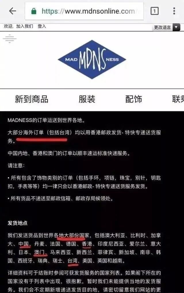 Madness官网还曾把台湾、香港、澳门列为国家。