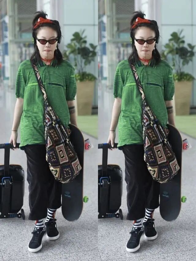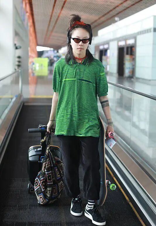 窦靖童的个性真的很像他的母亲王菲。她穿的够随便,气质撑起她。不得不说,窦靖童并不在乎自己的形象,所以她穿着自己的老爷们儿衬衫,戴着墨镜打脸“欧阳靖”。