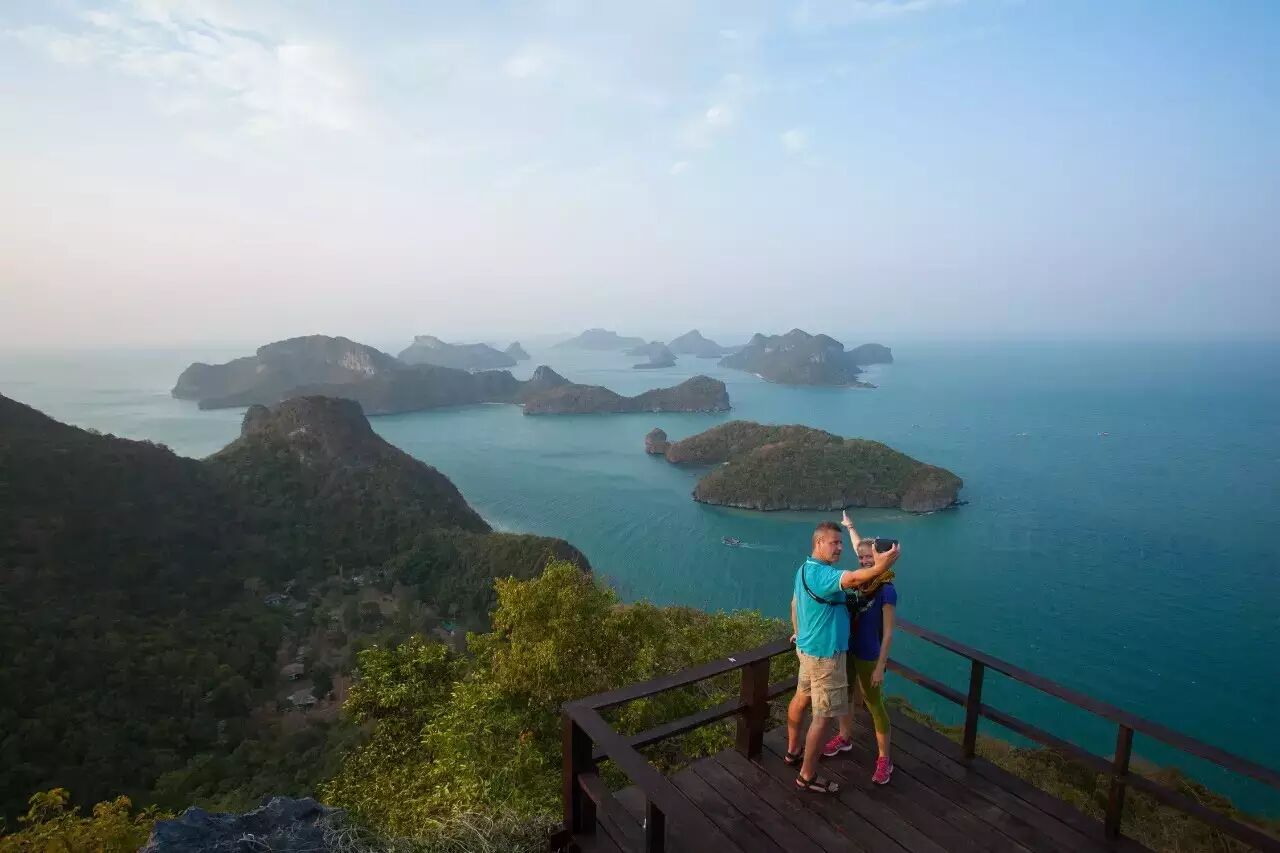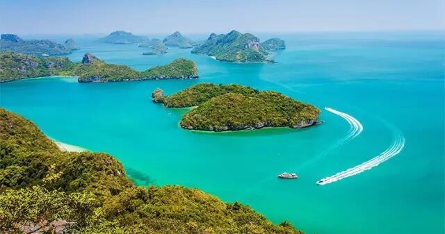 石灰岩构成的悬崖峭壁、白色的沙滩、隐蔽的礁湖和茂盛的丛林及野生长臂猿——这就是安通国家海洋公园的面貌。让小船如行驶在玻璃上,与海底的倒影轻声say hi。很多游客就是被安通国家海洋公园的一张图深深秒到才来到这里,不愿离开。