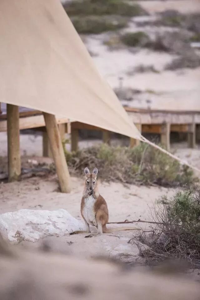 每个帐篷都设有一个天然淋浴间,并配有原生草本肥皂和环保洗发水。浓浓的原始气息。一不小心,就可以看见帐篷边蹦蹦跳跳的袋鼠。