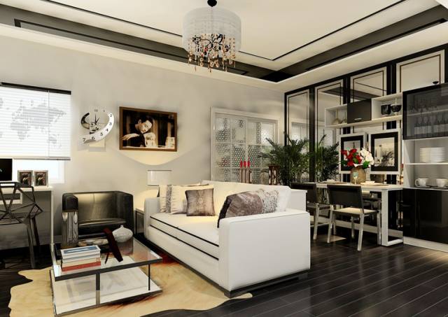 1.由于面积的限制,有限的空间很容易显得狭窄小气,若整体定制家具选择简约的黑灰白作为主色调,可以在内涵上展现大气度。