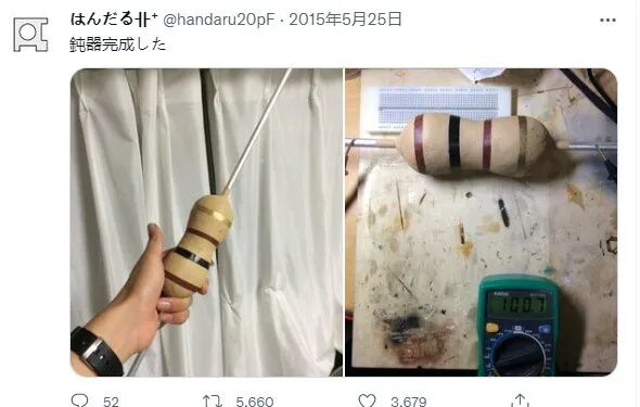 比如这个看起来像电阻但其实是杀人用的钝器