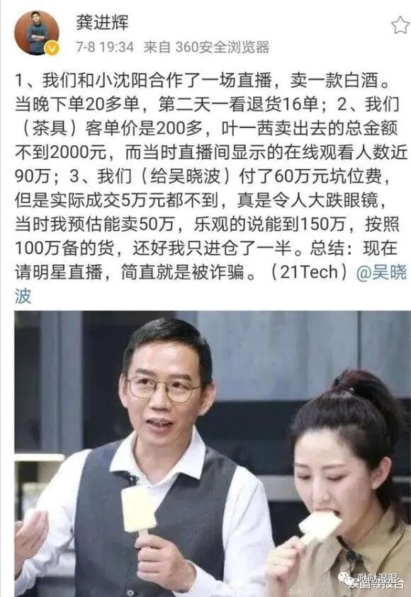 却不料,“小沈阳直播卖白酒,当晚下单20件,第二天退货16件”让其负责人大跌眼镜,最后忍不住吐槽:现在请明星直播带货,简直就是诈骗