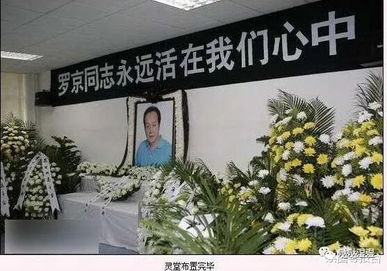 没错,这就是2009年,央视主持人罗京的灵堂照片,从花木树叶的摆放角度也能看出,这是一张照片,不过被有心人P成了小沈阳。