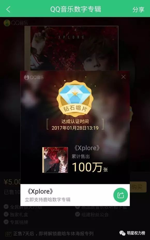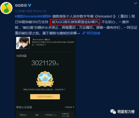 当然,鹿晗并不是唯一一个坐拥“钻石专辑”的。
