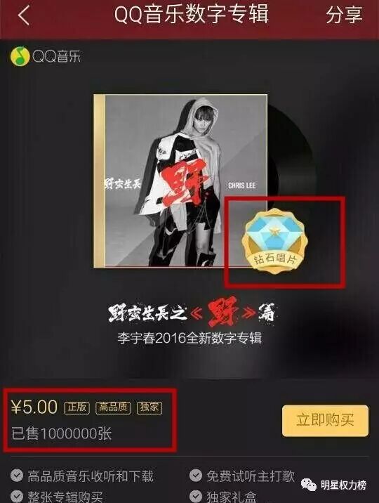 李宇春去年的新专《野蛮生长》之《野》篇也曾一度刷新过数字专辑的销售记录。