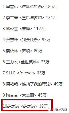 以及薛之谦啊,06年他出首张专辑的时候,一个月就卖出了20万张,还排到了当年专辑销量的top10↓