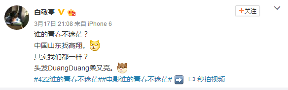 隆重介绍小莉的第n+1任脑公——白敬亭,最近冲着洲洲的推广曲特别关注了一部叫《谁的青春不迷茫》的电影,然后就又没骨气的爬墙啦