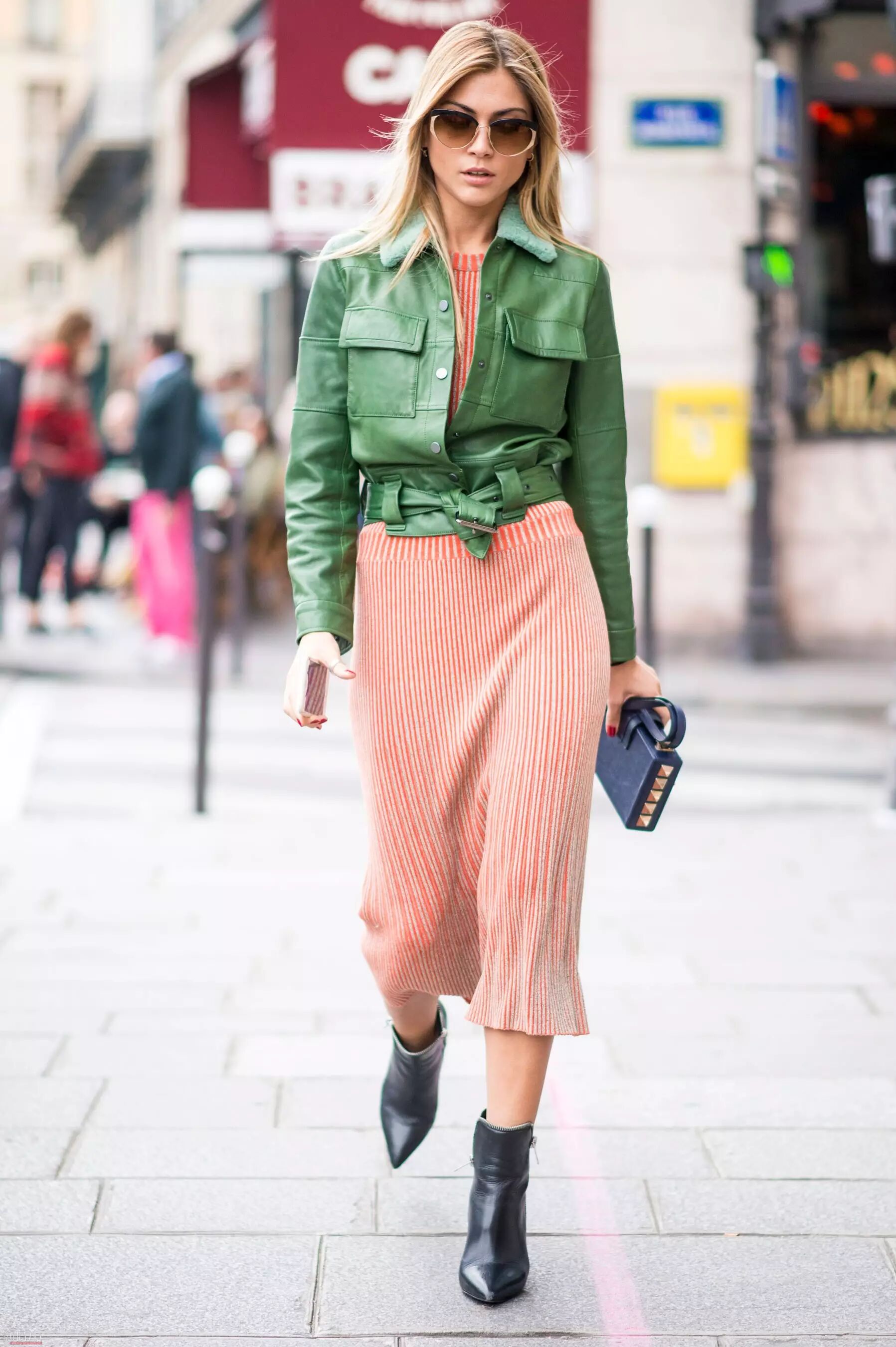这身烟灰绿搭配芥末黄,把两种流行色完美搭配,高手啊!