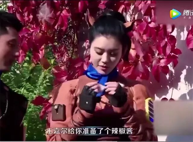 在某综艺节目中,奚梦瑶所在的队伍与“敌方”队员王嘉尔相遇,“仇人”见面当然是要互相伤害的,于是奚梦瑶和队友张继科、尹正把王嘉尔堵在墙边,奚梦瑶拿出一包辣椒酱让王嘉尔吃。