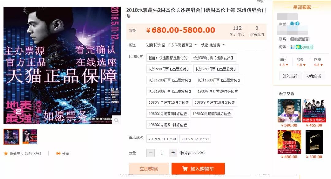 已经将周杰伦珠海站的票下架