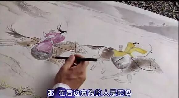 在片中出现多次的那幅两个男人在骏马上引弓搭箭的画正是他的名作:《天山大猎图》。