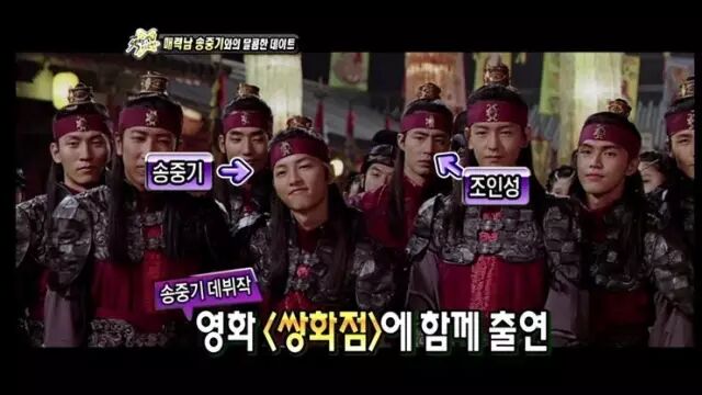2008年宋仲基就是以《霜花店》中36建龙卫侍卫之一正式出道。,虽然是个小龙套,一位默默无闻的跟着赵寅成大哥的小跟班。