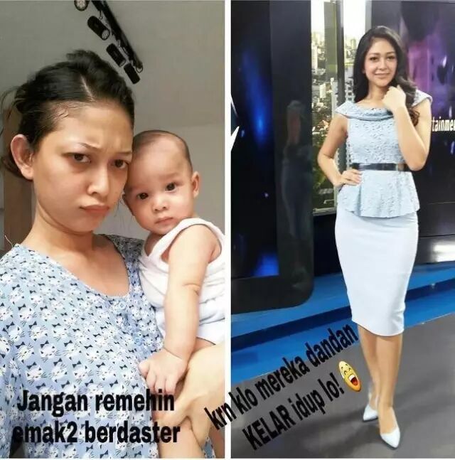 谁说姑娘生了娃儿就特么变成黄脸婆了?老娘好好打扮一下照样美死你们!大概就是这个意思。
