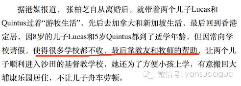 这则来自台湾的新闻的可信度本来就比较低。尤其可疑的是,这个报道中间还有一段是说张柏芝带孩子回香港定居但是很多学校不收,教友牧师帮助才能进入某基督教学校。