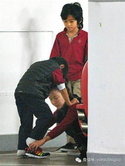 再加上张柏芝给小儿子跪地系鞋带照片曝光