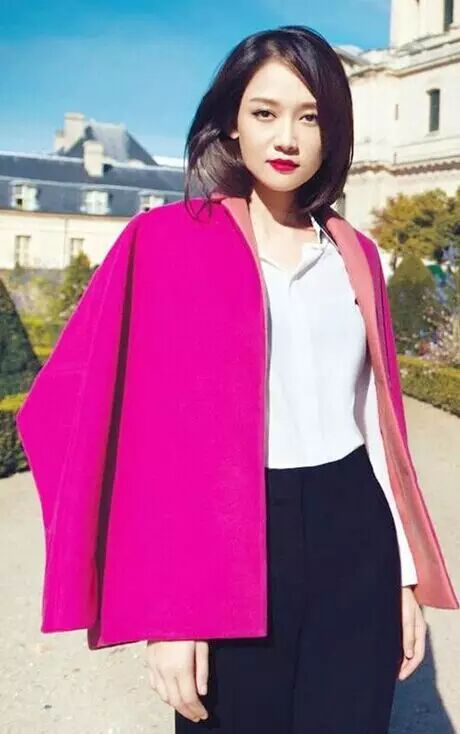 白衬衫+黑长裤的搭配过于古板,可一旦披上一件枚红色毛呢外衣,整体风格竟变得浪漫又充满的女人的香气。艳丽却不花哨,妩媚得恰到好处。
