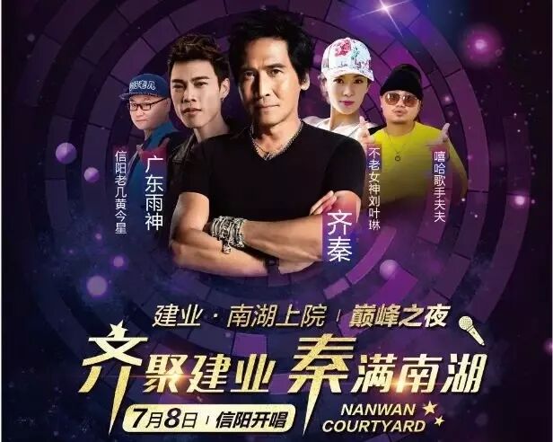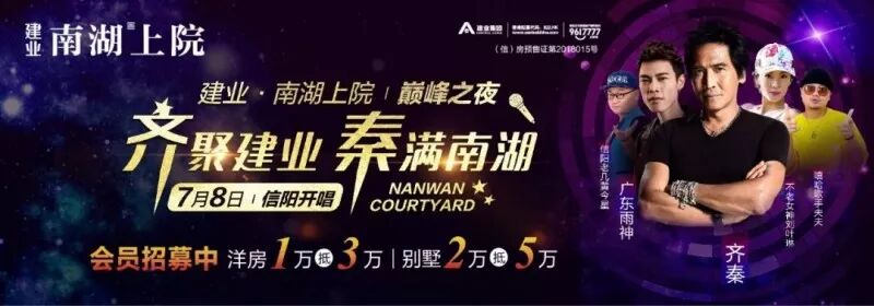 信阳消息(殷勇)群星闪耀,光芒盛放,7月8日19点30分,齐聚建业 秦满南湖2018建业·南湖上院“群星巅峰之夜”演唱会在信阳百花会展中心盛大举行!