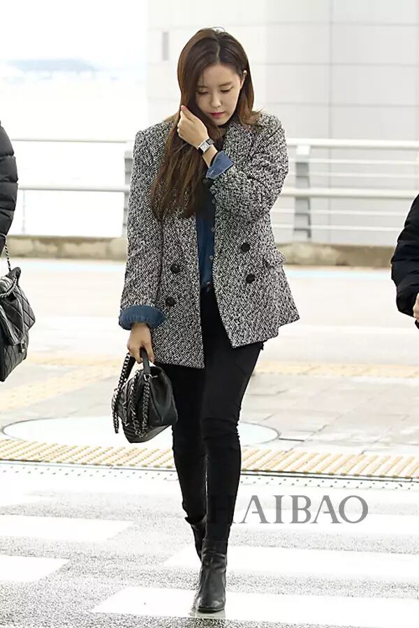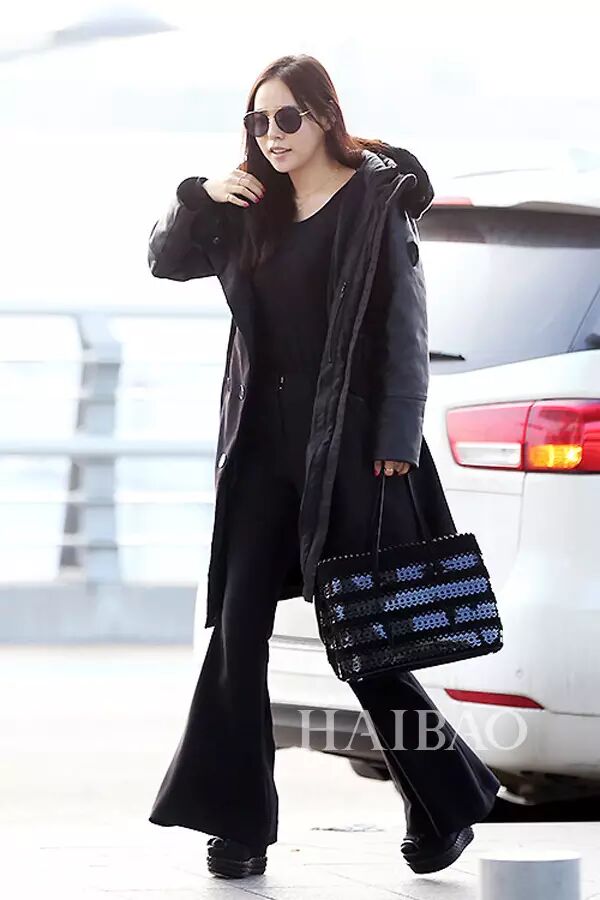 T-ara组合成员朴孝敏11月29日韩国仁川机场街拍 (飞北京):拎Saint Laurent手袋