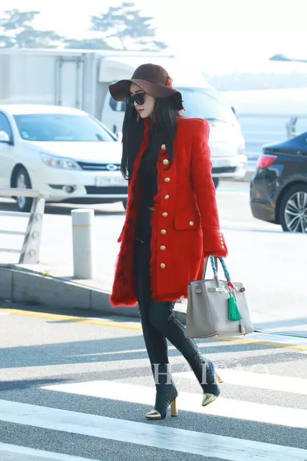 洪秀雅12月1日韩国仁川机场街拍 (飞香港):拎Hermes柏金包