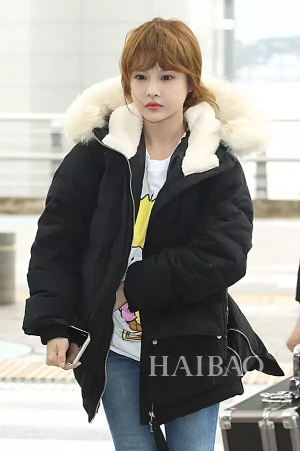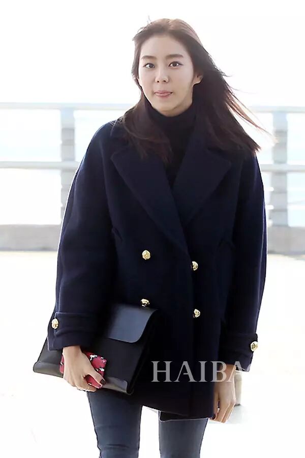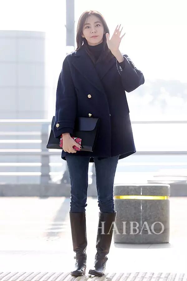 金宥真 (U-IE) 12月1日韩国仁川机场街拍 (飞香港):身着Lucky Chouette深蓝色短大衣