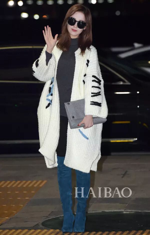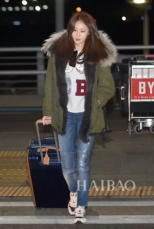 少女时代组合成员徐贤11月10日韩国仁川机场街拍:身着Celebee白色长毛衣