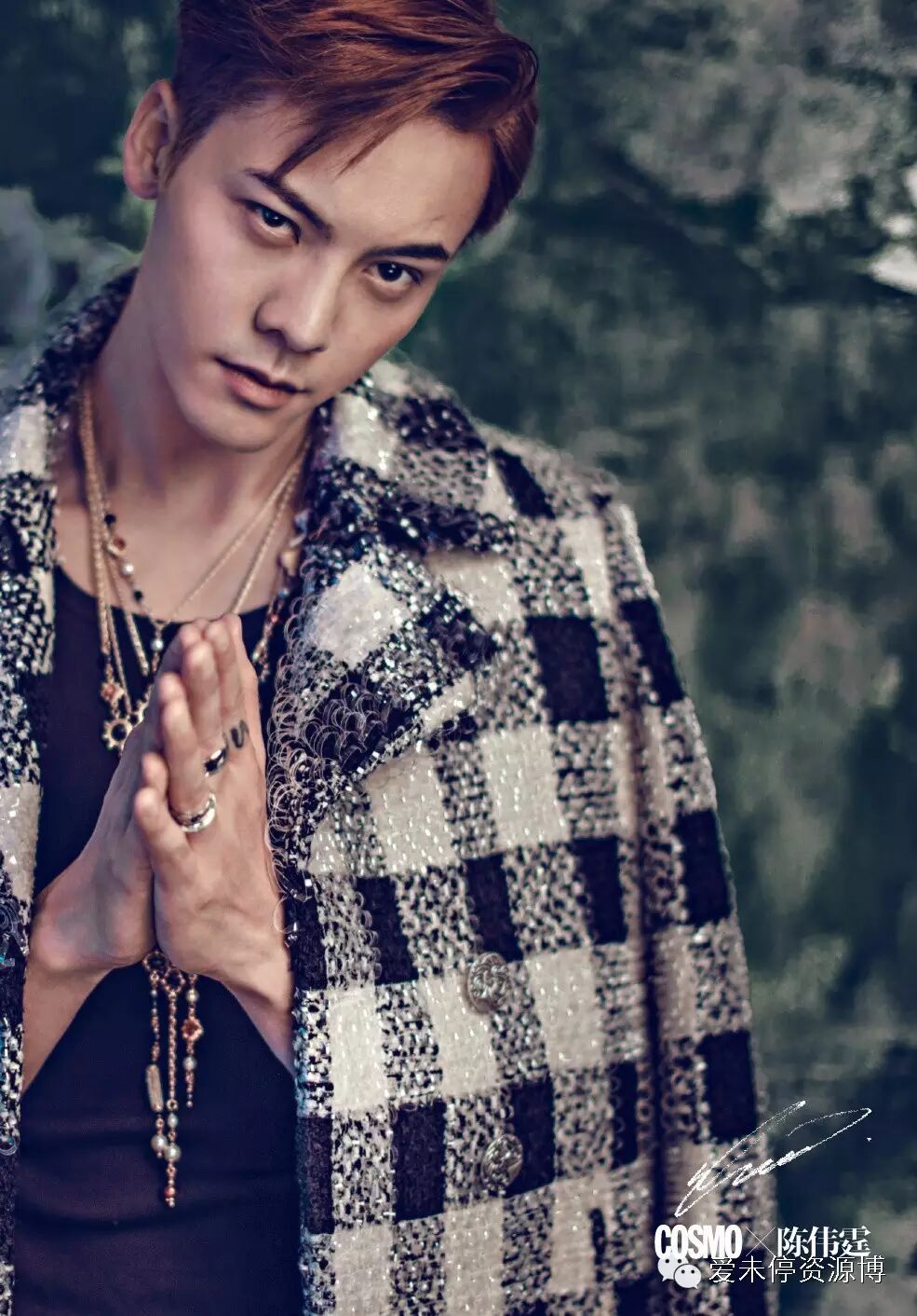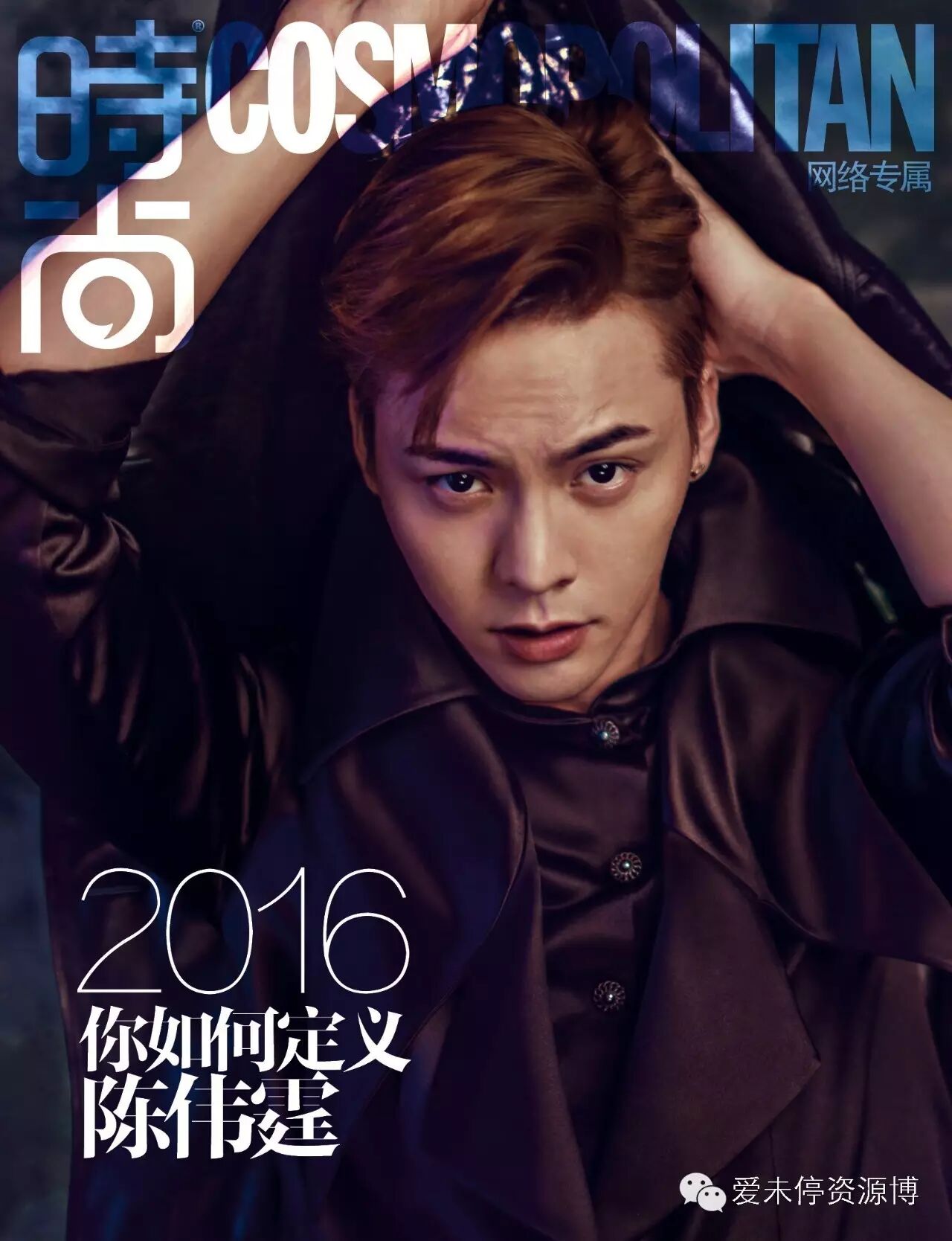 陈伟霆身着Chanel 2016 Pre-fall早秋系列黑色小牛皮大衣登上《时尚COSMO》杂志5月号封面,显得高贵而神秘,丝质衬衣勾勒完美身形,性感而慵懒。
