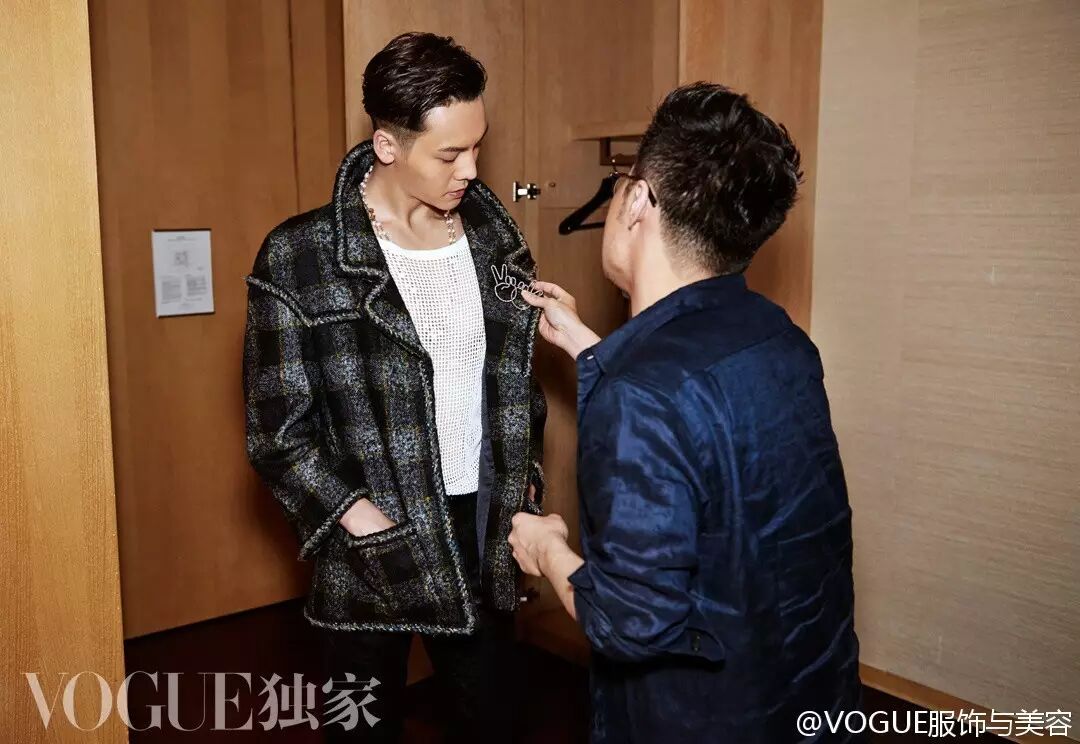 内页大片陈伟霆身着Chanel 2016 Pre-fall早秋系列黑白格纹软呢大衣诠释优雅大气,充满威胁与诱惑。