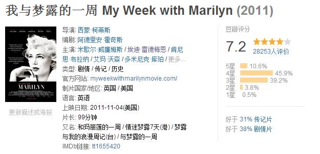 这部2011年的电影,豆瓣评分7.2,看完之后让我对梦露有了新的认识。