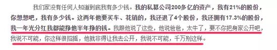 黄忠东一直都在给人塑造一个我很有钱,但是我很低调的形象,甚至不惜用贬低儿子智商的说法来证实这一点。但事实上,在采访中他多次提及自己身价200亿这件事儿,然而这200亿身价到底是真是假,我们都无据可查。
