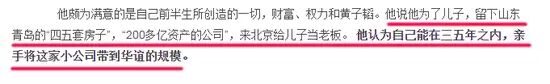 而这还远远不够,他认为自己在三五年内能把这家公司带到华谊的规模(华谊笑了),简直是一个大写的niubility!