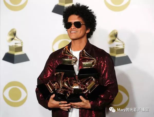 火星哥(Bruno Mars)横扫本届年度专辑、年度制作、年度歌曲、最佳R&B演唱、最佳R&B歌曲、最佳R&B专辑、最佳非古典工程专辑等7项大奖,也连续2年拿下了年度最佳专辑,成为最大赢家。