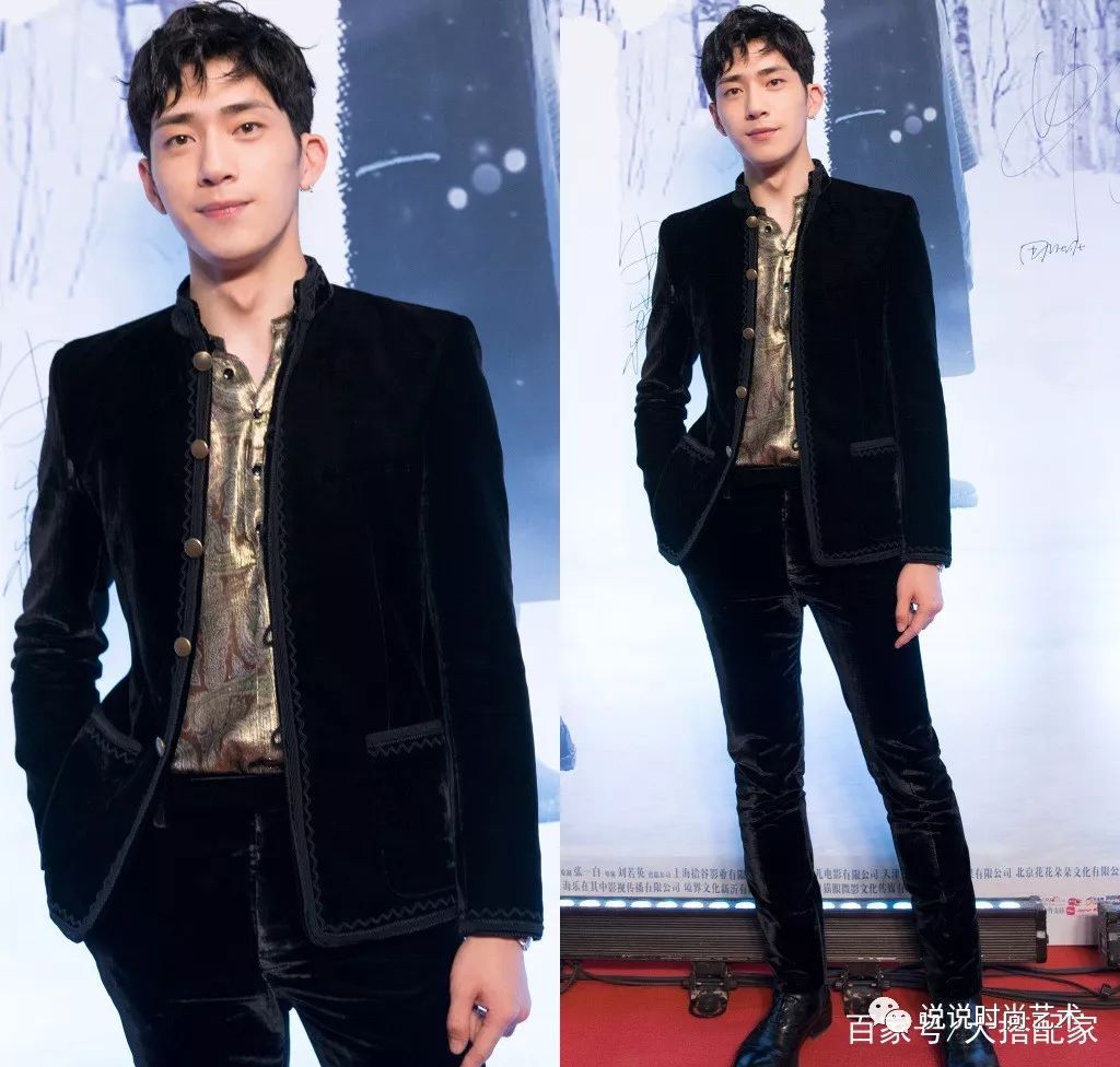一身西装的井柏然在参加活动走上红毯的时候是十分的俊朗帅气,黑色的丝绒质地多了一些贵气,金色的衬衫搭配井柏然的颜值丝毫没有奢侈的庸俗感。