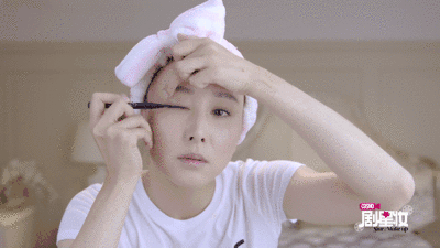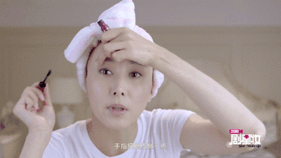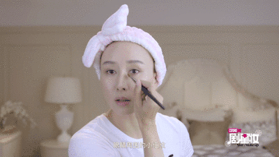 眼部定妆可以使用黄色散粉来遮盖黑眼圈的青色,这可是胡静的绝招呢!