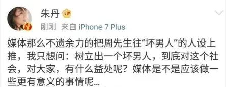 周一围被狗仔抓拍到和助理共喝一杯奶茶,遭到网友攻击“渣男”、“没有边界感”时,他本人还没说什么,朱丹第一个先跳出来和网友对线: