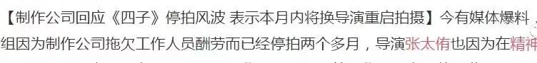 导演张太侑因为剧组工作人员薪酬被拖欠而与制作公司产生矛盾,已经多日没有出现在片场,根本联系不上。