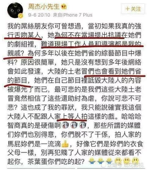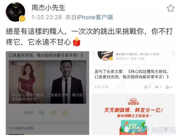 在前几天,周杰晒出了两张截图,截图内容就是《林心如吐槽周杰舌吻口臭》,周杰回应,总是有这样的贱人,一次次跳出来挑战你,你不打疼他,他永远不甘心。