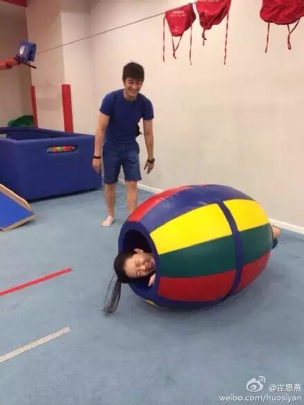贾静雯也在微博上晒过和咘咘在美吉姆上课的照片