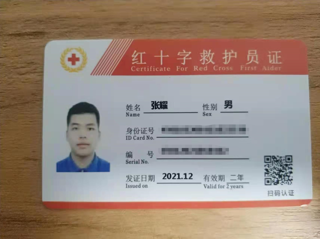 张耀同学立即向民警表明自己红十字救护员的身份,并请民警帮全程录音录像。