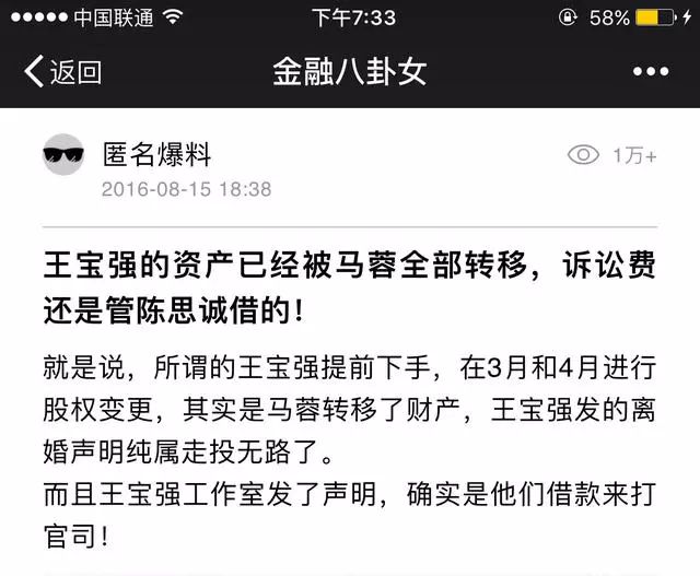 去年8月14日深夜,王宝强突然在微博上发表离婚声明,称马蓉和经纪人有不正当关系。消息一出,所有的网友都震惊了。
