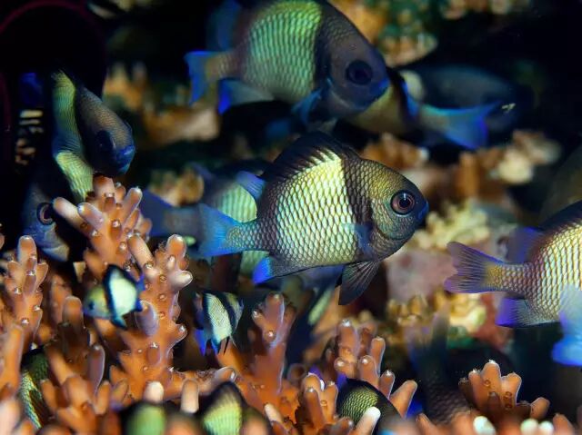 曼卡保育区内多数海岛人烟罕至,珊瑚覆盖率极高。有的像超厚绒布折成的大捧花,有的像扁平的鹿角,在礁石表面也长满各类珊瑚,吸引许多鱼类聚集觅食。