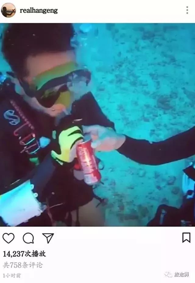 26日韩庚也在ins晒出自己潜水的视频,视频中韩庚还能在水下喝饮料,也是厉害了,水下喝饮料味道不一样吗?