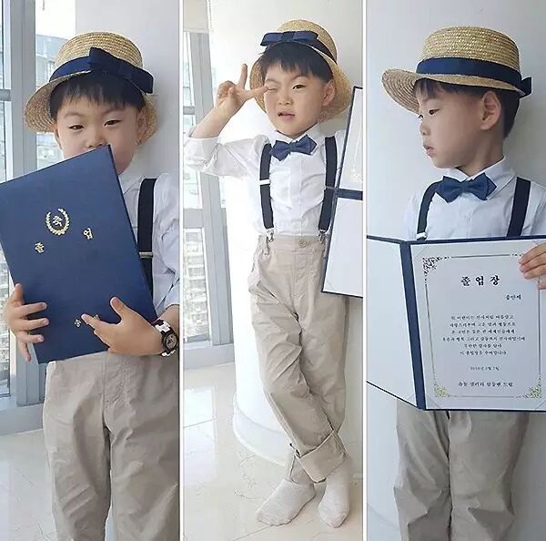 5月31日,宋一国通过个人SNS上传了一组三胞胎儿子大韩、民国和万岁的近照。穿着整齐服装、领口别着蓝色领结的三胞胎手拿KBS综艺节目《超人回来了》的毕业证书,一副小绅士的模样非常讨喜。特别是三胞胎中的万岁,时不时地比着V手势、眨眼睛,淘气十足。而大韩则一脸呆萌地看着镜头,民国则显得从容自得,三胞胎各自不同的表情引得众人忍俊不禁。