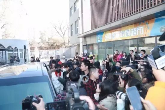 据说,有的粉丝为了见偶像,早上5点就蹲守校园陪考了。